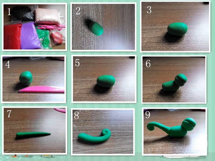 3取出紫色太空泥搓成长条围着眼睛绕一圈.