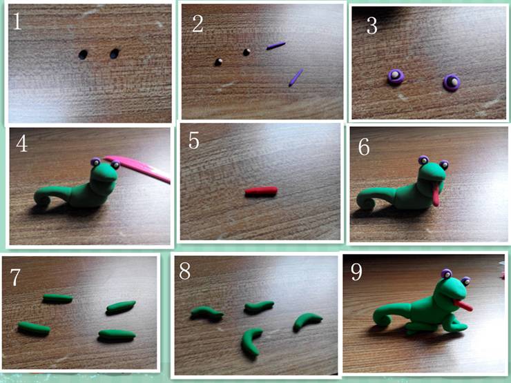 9把作为变色龙腿放到相应的位置上面,要注意保持变色龙平衡。