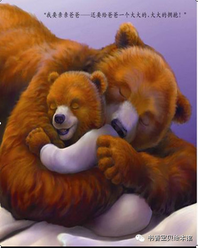 我们常说,母爱是圣洁和伟大的。其实,来自父亲的爱,又何尝不是如此呢。而且它往往比母爱又多了一些机智、雅谑和风趣。好父亲和好母亲一样,都是孩子的“第一所学校”。就像这个故事里的小熊的爸爸,他对自己孩子的心理、个性和倾向了如指掌,因而能因势利导、循循善诱,在看似游戏和玩闹中,完成了对孩子的照料、鼓励与引导。贯穿着整个故事的,是那暖暖的、怡怡的亲子之爱。这种爱从小熊爸爸的心灵里、目光里、谈话里,还有那机智的行动举止中,轻轻地、缓缓地流露出来,如涓涓清泉,滋润着小熊幼小的生命和单纯的心灵。而小熊献给爸爸的那个甜甜的吻,还有那个大大的拥抱,就是对这温暖的、无私的舔犊之爱的最好的回报。