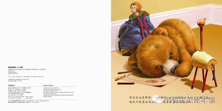 “不过也没关系,”爸爸有点无奈,一边帮熊宝宝穿上小睡衣,一边说,“,那么,像小猴子那样吻爸爸,好不好?”