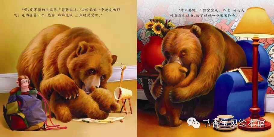 “才不要呢!”熊宝宝叫道,“我不要吻爸爸!”