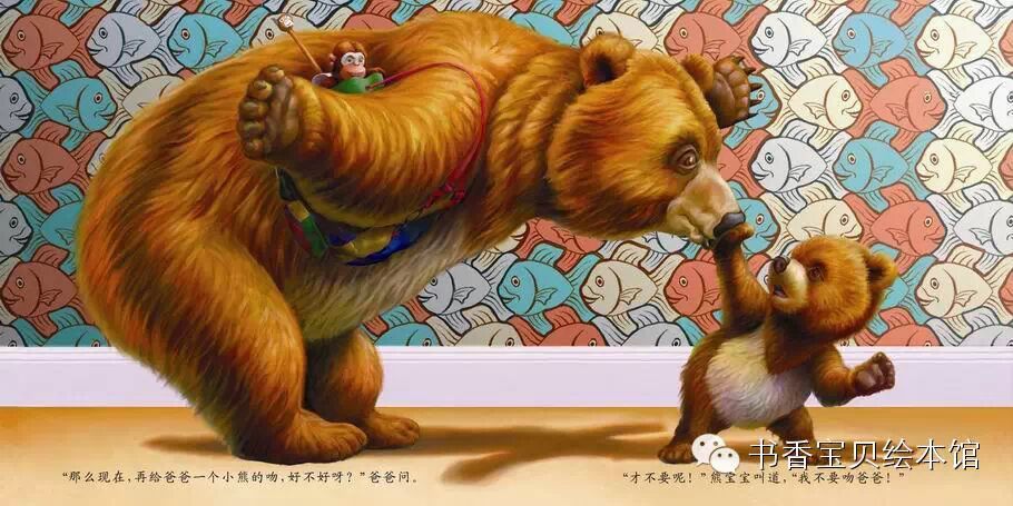 “才不要呢!”熊宝宝叫道,“我不要像猴宝宝那样吻爸爸!”