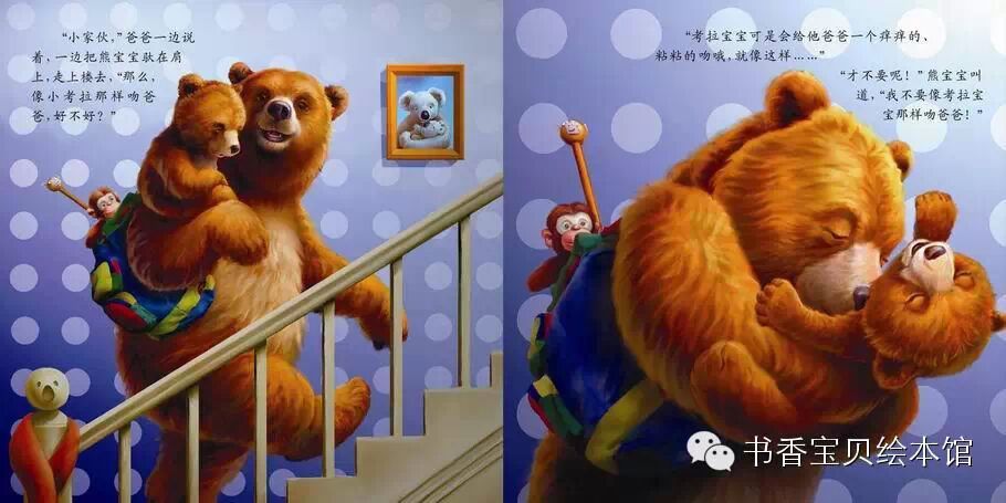 “才不要呢!”熊宝宝叫道,“我不要像考拉宝宝那样吻爸爸!”