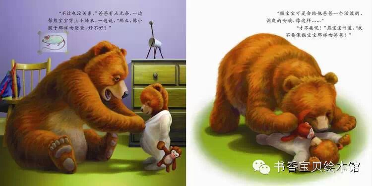 “才不要呢!”熊宝宝叫道,“我不要像老虎宝宝那样吻爸爸!”