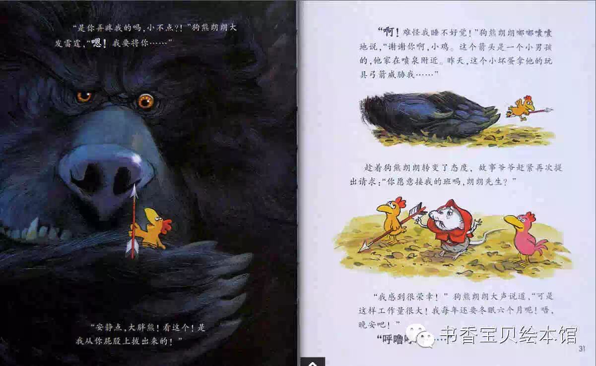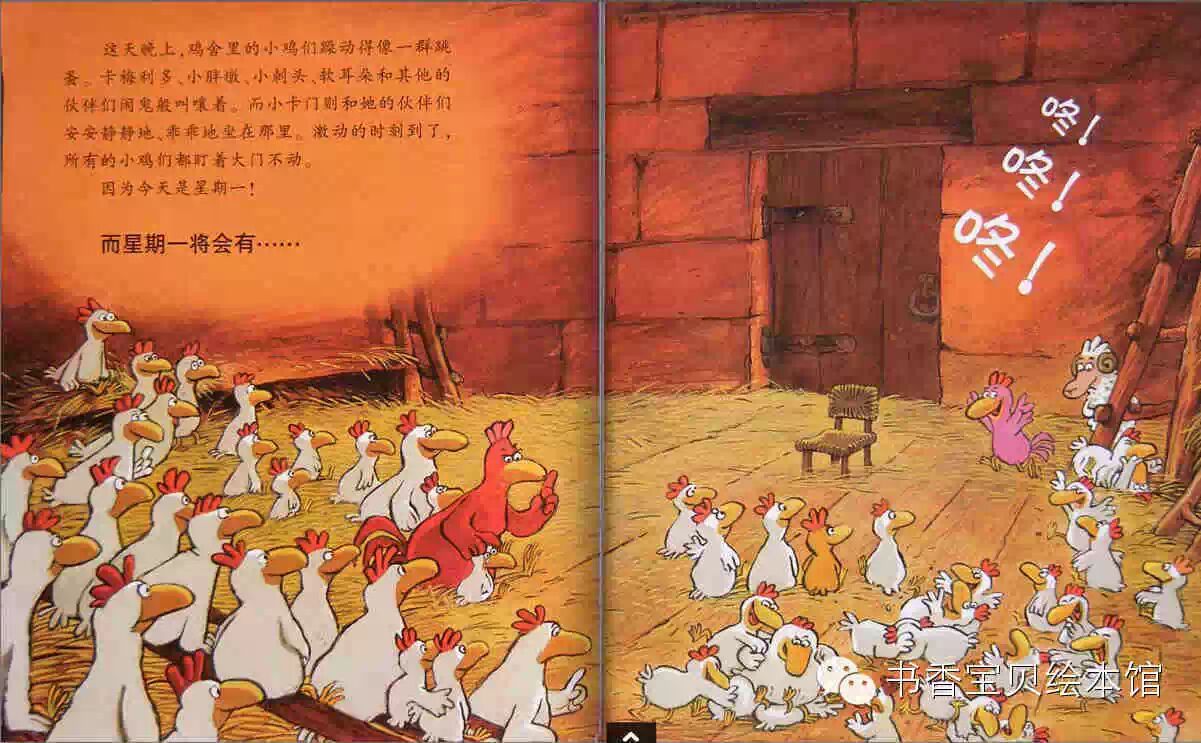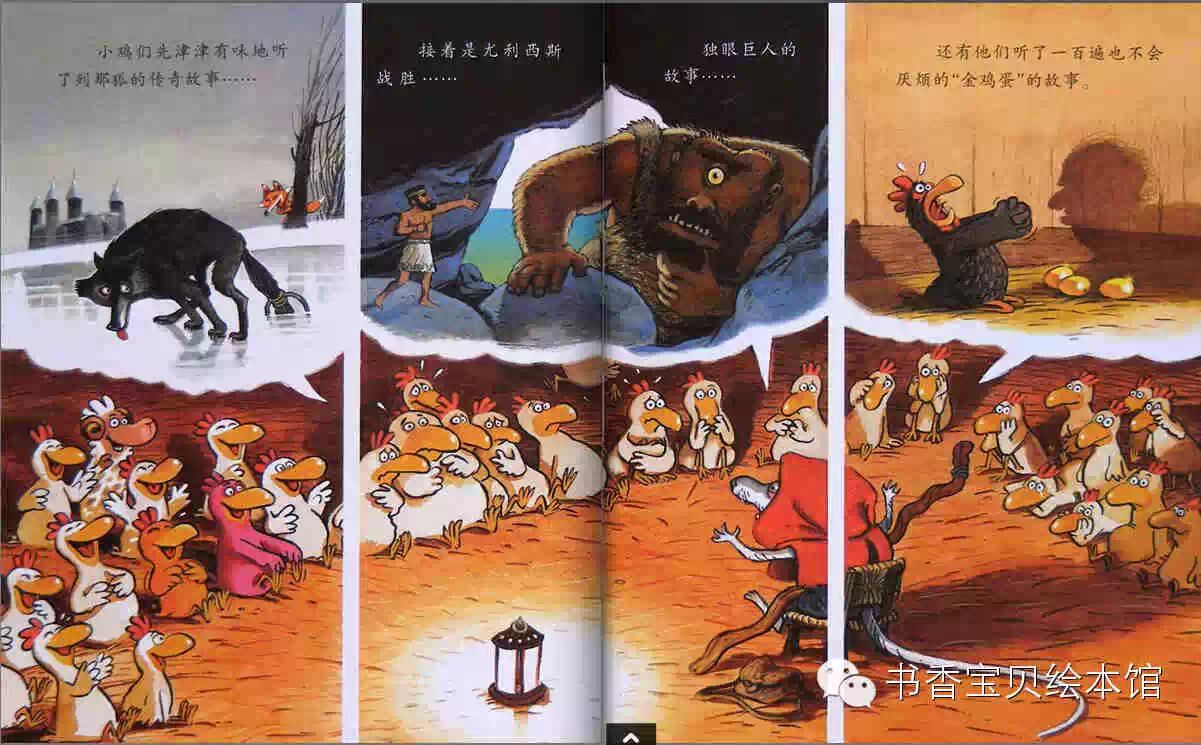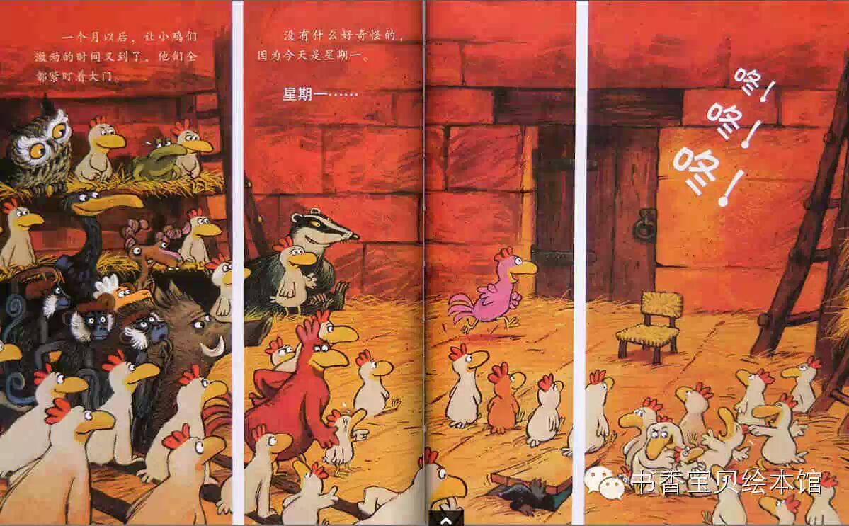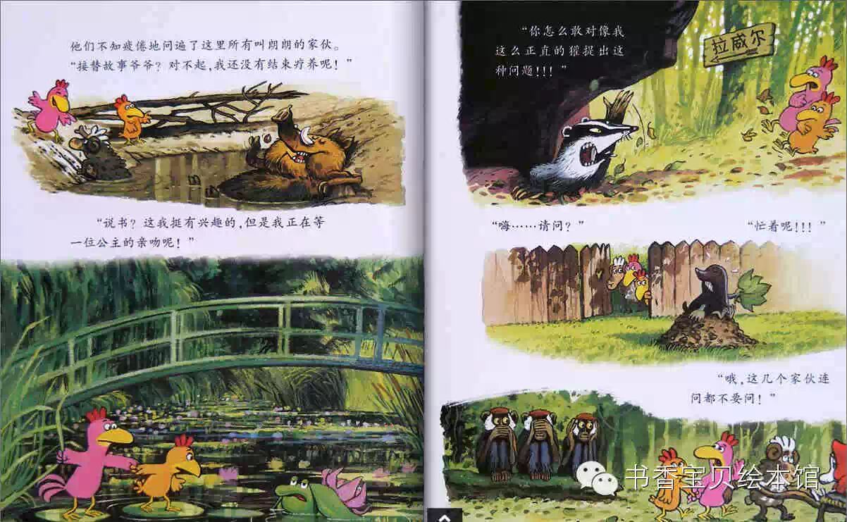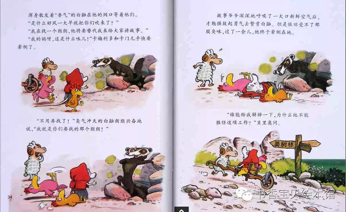 内容简介: 儿童故事绘本中小鸡们特别喜欢、特别期待星期一。每到星期一,大家就整整齐 齐端坐在一起,紧紧盯着鸡舍大门。当敲门声响起,美好的时刻就开始了,大家 热烈欢迎故事爷爷的到来。故事爷爷准备讲故事了,喧闹的小鸡们立刻安静下来 ,静的连羽毛掉在地上都能听见。故事爷爷绘声绘色的讲完一个又一个故事,小 鸡们听的全神贯注,完全沉浸在童话故事当中,时间过得很快,童话故事讲完了 ,在小鸡们的不舍中,爷爷出发到另一个地方去讲故事了。他走啊走啊,步履显 得那么沉重,他哧呼哧呼的喘着气,关节咔咔作响,故事爷爷在一口古井边停了 下来,他悲哀的想到,我变老啦,走不动了,再也不能像以前那样奔波于鸡舍间 了,那么以后谁来给孩子们讲童话故事呢?鸡舍里,卡梅利多、卡门和贝里奥发 现故事爷爷遗落了他的奶酪口袋,于是一路追赶,去发现故事爷爷在古井边哭泣 ,原来,故事爷爷很遗憾没有找到接班人,而他自己已经年迈的快离开这个世界 了。正在这时,故事大王的鬼魂出现了,他提示故事爷爷能找到继承者的预言, 这个睡在叶子上的继承者叫朗朗,只要跟着箭头就能找到他。而三天内如果还找 不到朗朗,故事家族的财富将永远失传,以后再也没有人知道这么多童话故事, 在也没有人讲故事给孩子们听了。故事爷爷很沮丧,卡梅利多、卡门和贝里奥决 定帮助故事爷爷找到继承者朗朗,时间紧迫,他们马上就开始行动了,一路寻找 ,他们经历了怎样的艰难险阻,遇见了多么稀奇古怪的动物,碰到了怎样的危险 ,就让小读者们亲自去了解吧。 编辑推荐: 卡梅利多和朋友们正直勇敢,还有助人为乐的热心肠,他们不怕艰难险阻,跋山 涉水,翻山越岭,故事爷爷年迈走不动,他们还背、抬、甚至弄了副轱辘车,想 尽各种办法带着故事爷爷一起走,只为了帮助故事爷爷寻找继承人。历尽千辛万 苦,他们最终帮助故事爷爷实现了愿望。假如孩子太小,可能复杂的画面和情节 不会吸引他,但是等孩子长大一点,就会有耐心去读故事,这时候,恐怕会突然 一下子就爱上这套情节紧凑有趣,想象力丰富超有意思的书。