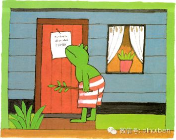 野兔不在家,只在门上留了一张纸条。弗洛格看不太懂,只知道好像关于一个聚会的事。