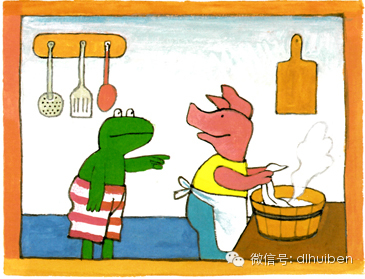 “是洗衣日啊!”小猪回答说,“我得洗床单、枕套,还有所有的衣服。要我帮你洗游泳裤吗?”
