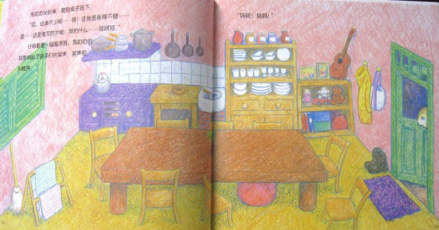 “不管哪个孩子,做了错事、挨了骂,都会躲到这张桌子底下。怎么喊也不肯出来,还在底下涂鸦……哦!对了!”