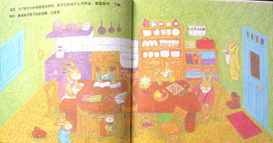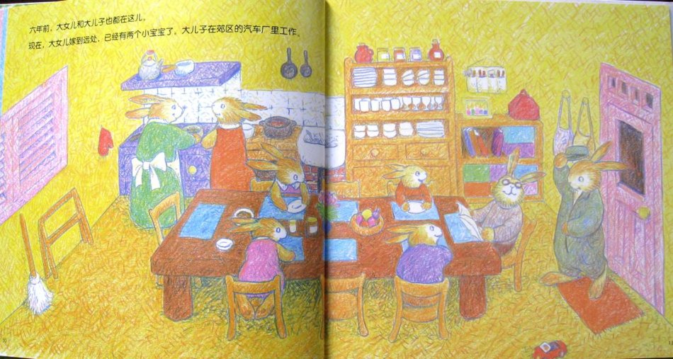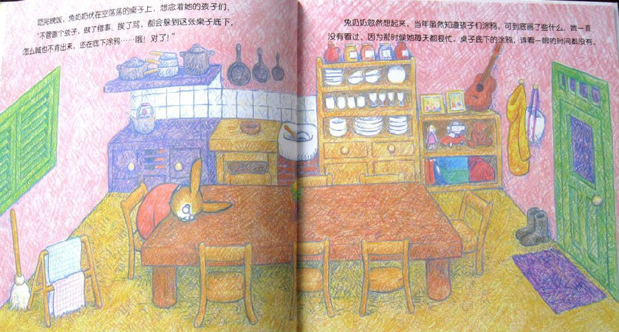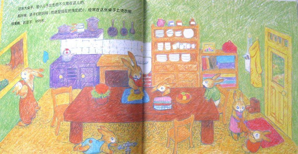 那时候,孩子们的妈妈(也就是现在的兔奶奶),经常在这张桌子上烫衣服、做蛋糕、剥豆子、补衬衫。