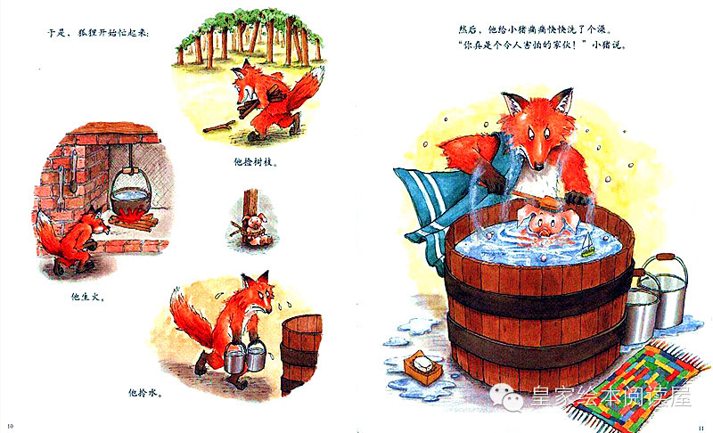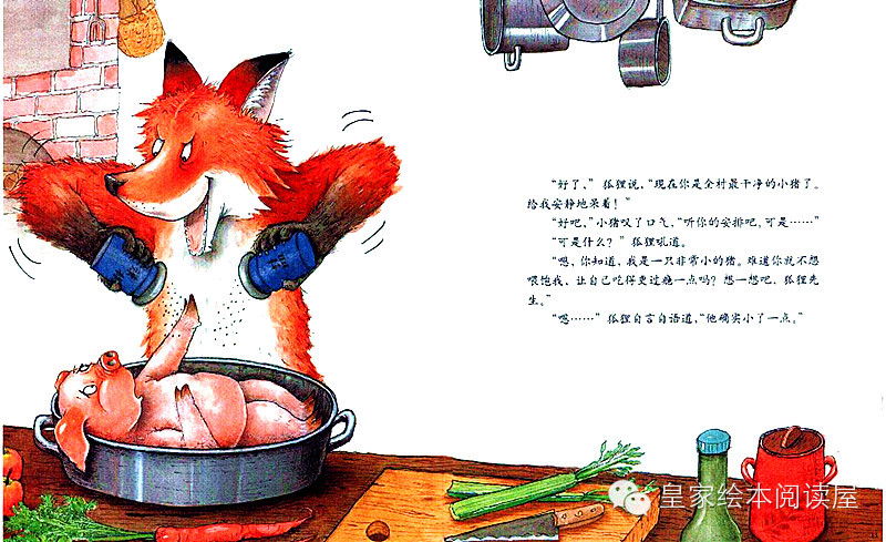 狐狸说:“现在你是全村最干净的小猪了。给我安静地呆着!”