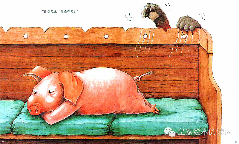 “可是,你知道,我是一只勤劳的猪,所以我的肉特别硬。难道你就没有想过给我按摩一下,让自己能吃上更嫩一点的烤肉吗?想一想吧,狐狸先生。”