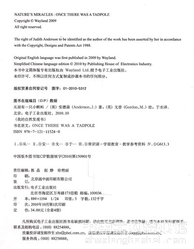 《我的自然发现书:从前有一只小蝌蚪》由电子工业出版社出版。