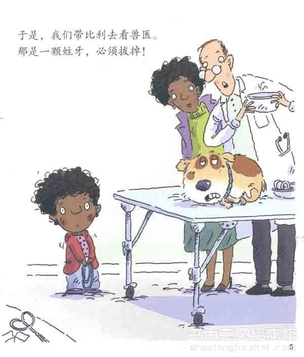 比利的蛀牙被拔掉了,但兽医让玛尔塔以后要给它刷牙。在这里,不妨跟孩子讲讲每天刷两次牙的重要性,并教他们掌握正确的刷牙方法。不过,在7岁之前,孩子刷牙时可能还需要大人的帮助。 .