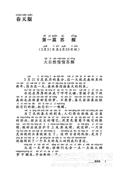 它让居住在钢筋水泥中的读者感受森林中的动植物在一年四季中五彩缤纷的生活,体验春的快乐,夏的蓬勃,秋的多彩,冬的忧伤……