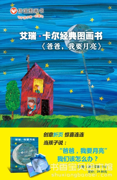 《信宜绘本:爸爸,我要月亮》介绍:小茉莉很想和月亮一起玩,但她摘不到月亮,便拜托爸爸把月亮摘下来,于是,爸爸拿了一把好长好长的梯子,架在一座好高好高的山上,努力地向上爬呀爬,但是月亮太大拿不下来,爸爸只好等到月亮变成下弦月,才把月亮带回给小茉莉玩……这是有关爱与梦想的故事,上下打开的多种折页变化,让孩子惊奇感受空间延伸的巧妙创意。孩子从故事情节中,不仅可以了解长短、高矮、大小等概念与形容词,还能从中观察到月亮阴晴圆缺的自然现象。