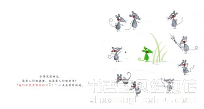 小绿鼠很难过,因为没有人愿意和他做朋友,小灰鼠们因为他是绿色的,都不愿意做他的朋友,于是他决定背起小包裹去寻找好朋友。一路上他遇见了绿色的蝈蝈、青蛙和变色龙,可是谁也不愿意做他的朋友,直到最后遇见一只绿色的大象。他们坐在一起,像好朋友那样,可是不久大象就变成了灰色,原来大象是因为害怕老鼠才变成了绿色。