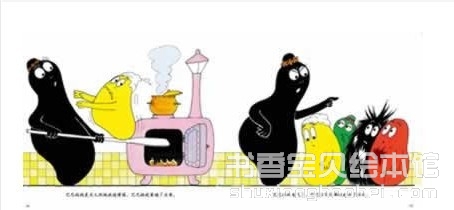 巴巴爸爸、巴巴妈妈和7个孩子之间相亲相爱,互相温暖。巴巴爸爸对所有人和动物也都充满了爱,他走到哪里,就把温暖和关爱带到哪里,哪里就成了温馨和睦的乐园。