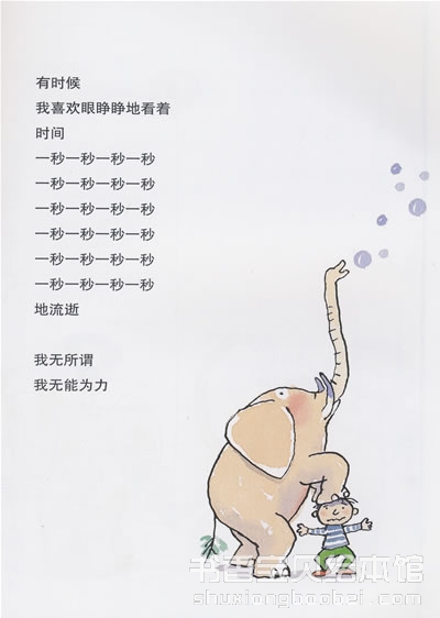 “1、2、3、木头人”,幾米画笔一挥,那些小人儿、小猫、小狗、大象、狮子、企鹅们……全都不动了,那些欢声笑语,“唰”地一下子统统跑进书里去。这书让我们见证了一场时空魔法——在真实世界里不经意地浑然天成以及在虚幻世界中任性地畅快奔腾。