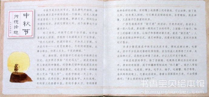每个传统节日故事,都是一次与历史的相遇。读这样一套书,让孩子了解节日传说的同时,同时将大师级别的美术熏陶给了孩子,该算是一次富饶的阅读旅程吧!还值得一提的是,每本书的最后,出版者贴心地附上了相关的历史小资料,让孩子们读完故事后,知道故事之外还有更为广大的天地,而无论是天上的神仙,还是地上的英杰,最终都会落到地面上,回到普通人的生活之流中去。