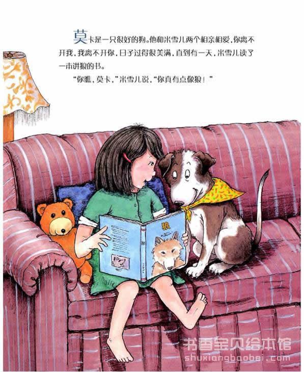 莫卡是一只温顺的狗,他和小主人米雪儿亲密无间,谁也离不开谁。直到有一天,莫卡看到了一本关于狼的书。“狼自由自在的生活真是神气”。于是莫卡决定放弃宠物狗的身份,要像狼一样……
