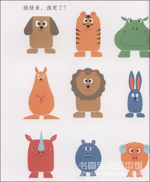 狗、老虎、河马、斑马、袋鼠、狮子、兔子……孩子们喜欢的18个动物朋友逐个登场亮相,它们都瞪大眼睛看着读者。每次翻页都让孩子们来猜猜“谁藏起来了?”、“谁哭了?”、“谁转过身去了?”……巧妙的艺术构思和精致的手工剪贴,让动物们轮流躲藏、变换姿态。
