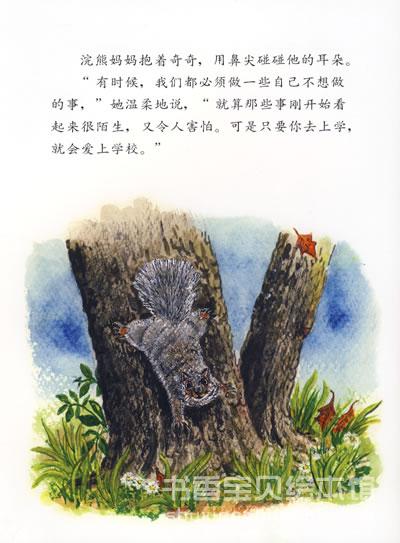 当浣熊妈妈离家寻找食物,或者必须和小浣熊分开时,就会拉起小浣熊的手摩挲自己的脸颊,好让他仔细地闻一闻妈妈的气味。 小浣熊该上学了,浣熊妈妈送给小浣熊一个“魔法亲亲”。小浣熊好喜欢他的“魔法亲亲”,他知道,不管到哪里,妈妈的爱都会永远和他在一起。