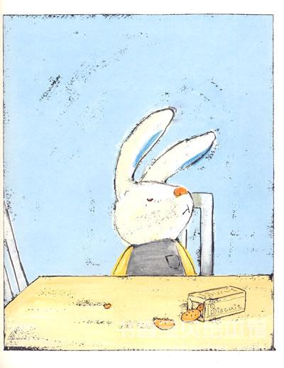在《我讨厌妈妈》中,酒井驹子表现出对颜色搭配的过人天赋,设计出以大片淡蓝色为背景的主画面,配合白色、淡黄色、黑色等色块强调重点;同时刻意不均匀的色彩表现产生了丰富的肌理变化,营造出温馨复古的浪漫感觉;黑色的轮廓线时断时续,使画面更显活泼;生动的表情与微妙的动作变化让这个满腹“牢骚”的小兔子跃然纸上。让每个孩子都在这本书中找到了自己的影子,让每个妈妈都露出会心的微笑,让每个人都感受到爱的自私与伟大。