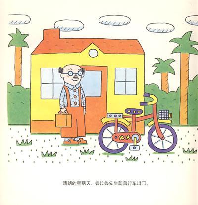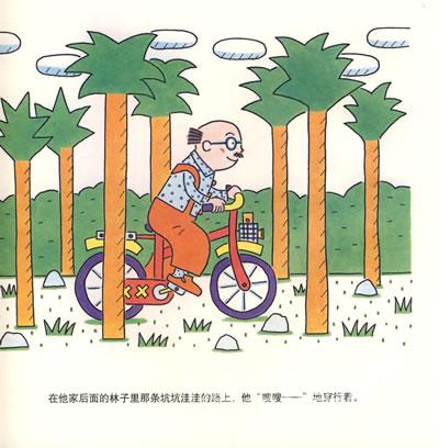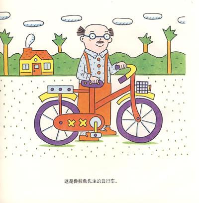 从庭院到厨房到自行车三本书里,鲁拉鲁先生的表情渐渐变柔和,变丰富;最初他的身体语言绷得直直的,后来增添了动感;画面的颜色也显得越来越热闹。鲁拉鲁先生变成一个通融的、乐呵呵的老头儿了。他特别能理解小朋友们那些看似无理的、天真烂漫的小愿望。