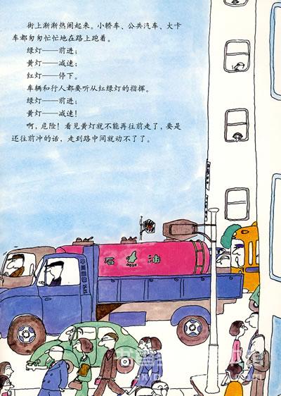 《红绿灯眨眼睛》曾入选为日本厚生省中央儿童福利审议会推荐图书,日本全国学校图书馆协议会选定图书。每天清晨,叔叔要来叫醒红绿灯:“今天也会很忙哦,拜托了!”红绿灯努力地工作着,绿灯——前进;黄灯——减速;红灯——停下。突然,怎么回事?红绿灯的信号变得乱糟糟的,车辆已经排成一串长龙了,红绿灯是不是忙晕了呀?