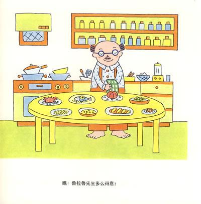鲁拉鲁先生一贯严格按照学过的步骤做菜,他相信这样做出菜才好吃。他那群不懂烹饪艺术的朋友却让鲁拉鲁先生发现,“大家一起热热闹闹地吃着,不管吃什么,怎么吃都非常得香。”他“从来没有这样享受过!”成人眼中一件严肃复杂的事,孩子会从本能出发,享用其单纯有趣的一面。