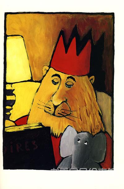 威风无比的大狮子收留了无依无靠的小象,于是,这一大一小成了最鲜明的对比、最特别的组合:狮子是高傲的百兽之王,令人敬畏,小象孤弱单薄,个子矮小;狮子拥有辉煌的宫殿,小象挨饿受冻,无家可归;狮子能滔滔不绝地讲出种种多彩的经历,小象不怎么会说话,他崇拜狮子的表达只是“你大”、“我小”;当小象长成大象,懂得了很多事情,狮子却慢慢老去,不再威武高大,岁月带来了完全相反的大与小。直到老狮子被赶出皇宫变成了流浪汉,迎接他的是大象紧紧的拥抱。因为大象牢记着“你大我小”,在他心里,狮子是永远的国王。