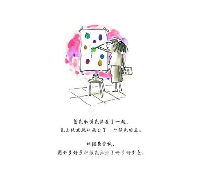 瓦士缇的老师请她随意地表达自己。但是瓦士提不会画画——她不是艺术家。为了证明这一点,她在一张空白的图画纸上戳了一个极其普通又充满愤怒的点。就是这个小小的点让瓦士缇开始了充满惊喜的自我发现之旅。这个小小的点是彼德·H·雷诺兹这个激发我们所有人创造力的精妙寓言的起点。这个小小的点就标志着开始……
