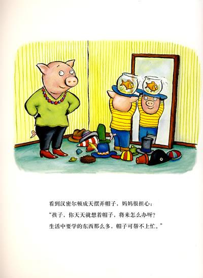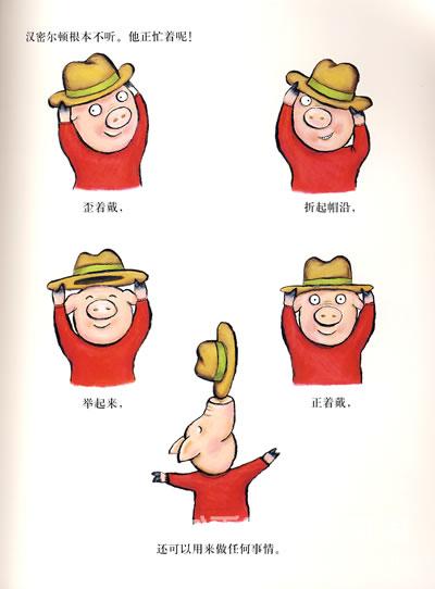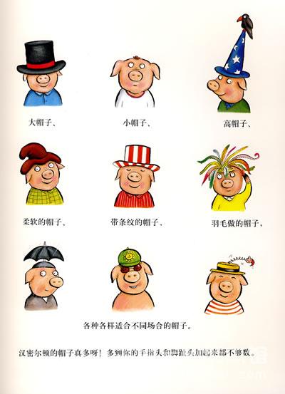 :《喜欢帽子的小猪》作者阿克塞尔•舍夫勒,什么?帽子?再普通不过了呀。可对于小猪哈弥尔顿来说,帽子可是非比寻常的!看封面:淘气的小猴子,无奈的小猪,咦,还有一顶奇特的帽子!好像挺有意思的。