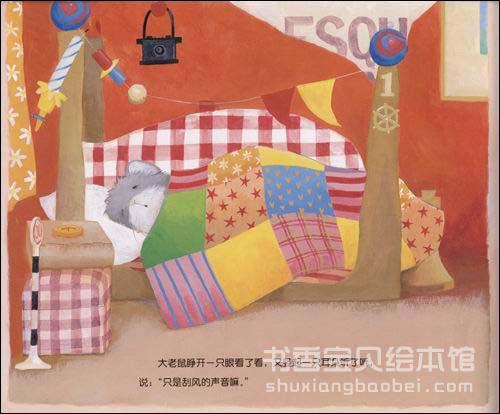 “轰隆隆”,窗外响起了吓人的声音,小老鼠怎么也睡不着,他赶紧推醒了哥哥……“哗啦啦”,窗外又响起了吓人的声音,小老鼠还是睡不着,他又赶紧推醒了哥哥……“沙沙沙”,窗外又响起了吓人的声音……这一夜对小老鼠兄弟俩来说真的好长好长啊!