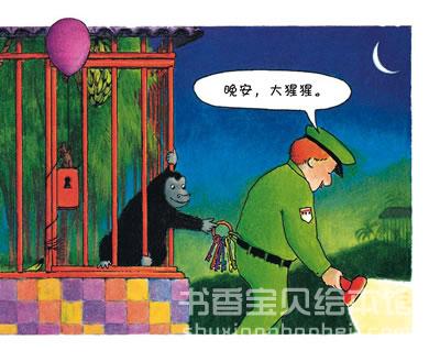 《晚安,大猩猩》全书文字并不多,但幽默耐读、温情脉脉,图画更是闪耀着一种宝石般的卡通色彩,整个故事就像是作者用浓浓的夜色与五彩缤纷的荧光粉画出的一个梦。活泼俏皮、栩栩如生的动物形象让人忍俊不禁;而气球、小老鼠、大香蕉等一系列精心设计、充满童真童趣的细节更是能让孩子们立刻融入其中。读完这个热闹又有趣的睡前故事,大人一定会和孩子们一起哈哈大笑!