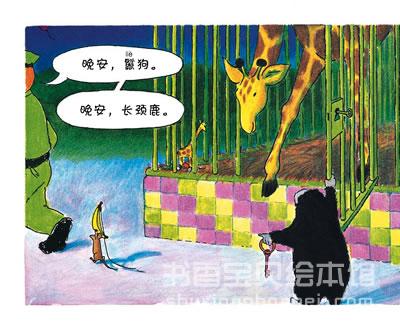 夜深人静,动物园的管理员去跟动物们一一道晚安。调皮的大猩猩拿走了他挂在身后的一串钥匙,从笼子里溜了出来,还偷偷放出了大象、狮子、长颈鹿……就这样,动物们悄悄地跟在管理员身后回了家……