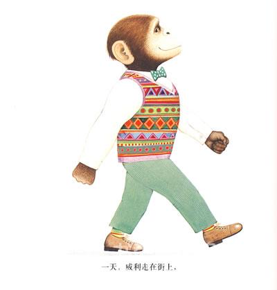 看似短小的故事在作者的笔下呈现得跌宕起伏,主人公威利的健身经历和体验令人忍俊不禁,也让我们深深喜爱上这只可爱的小猩猩,他的眼神、表情、动作以及其中所蕴含的丰富内心世界让他仿佛活在我们的眼前。无疑地,安东尼?布朗又一次带给了我们一部妙趣盎然的杰出之作:它构图简洁而匠心独运,干净利落的叙事和精致入微的绘画形成了完美的结合,使绘本的每一页都充满了动感和张力。情节如此自然灵动,幽默如此轻松别致,依然带着大师的特色和风格——既简省又锐利!