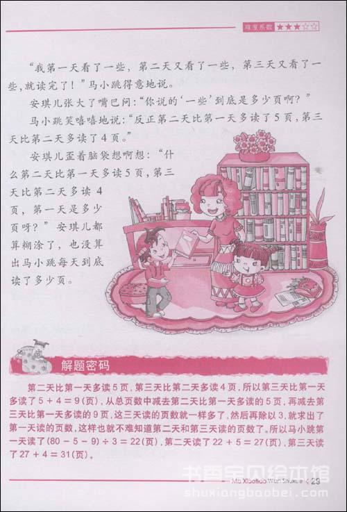 不再只是枯燥的数字,不再只是亘古不变的数学公式,不再只是照本宣科的数学习题,这里有的是一个活生生的世界——一个生活中的数学世界。80个趣味数学故事,马小跳带着你一起去发现生活中的数学,去发现数学中的美和乐趣!当你翻开这本书的第一页,便已经进入到马小跳的数学王国。你不仅要和他一起学习用聪明又巧妙的方法去玩各种不样的数学游戏,还会和他一起去认识数学之神阿基米德、科学巨人牛顿、数学王子高斯……