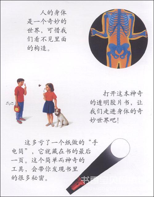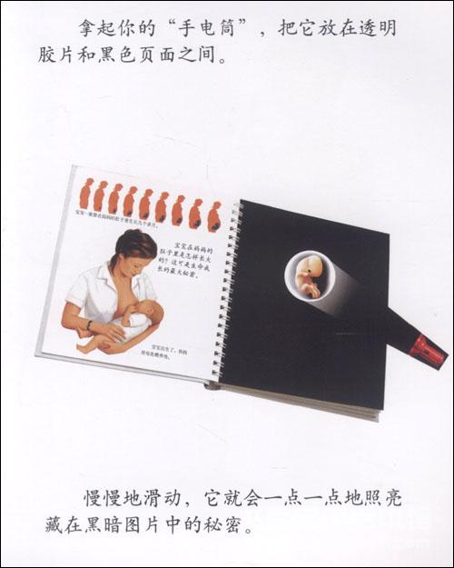 在一把“手电筒”的照射下,看一下我们身体的奇妙世界吧!你可以看到人体的骨架,还可以观察身上的毛发。在妈妈的肚子里生长九个多月后,我们终于来到世界上啦!看,你长得要么有点像爸爸,要么有点像妈妈……