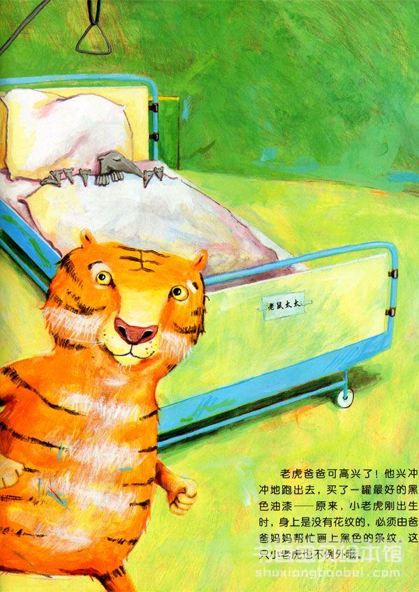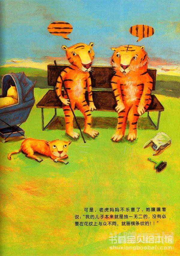 一个老虎宝宝诞生了。老虎宝宝刚出生时是没有斑纹的,必须由爸爸妈妈帮忙画上黑色条纹。所以老虎爸爸高兴地去买来了专门为老虎定做的黑色油漆。老虎爸爸为了让儿子与众不同,决定给宝宝画上竖条纹;老虎妈妈却不同意,一定要给宝宝画上横条纹。这对爱宝宝的父母争执不下,互不妥协。