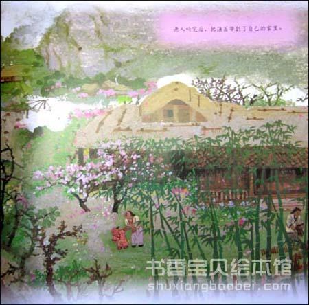 画家用中国传统的幽远流畅的笔触所绘的图画,作家用不禁放声朗读的优美语言,再现了中国古代大诗人陶渊明的名著。