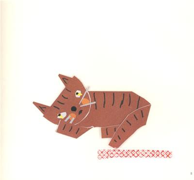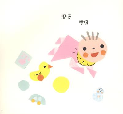 是的,答对了!婴儿的脸、衣服、玩具、猫,甚至是大地,都是用纸剪出来贴在白纸上,然后再根据故事为主人公画上表情,营造出~个又一个亲切、可爱的图案。就是~个名副其实的剪贴绘本。