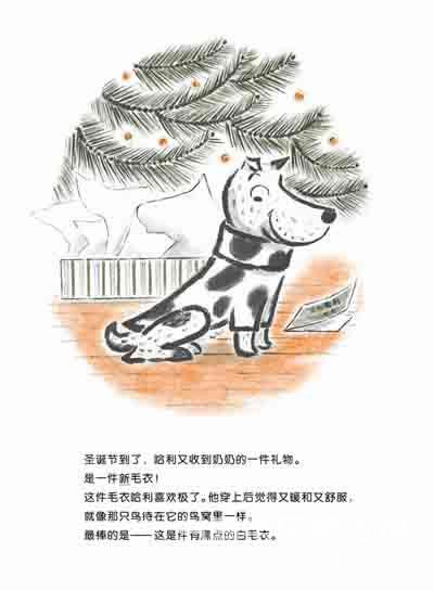 继《好脏的哈利》之后,1958年,吉恩?蔡恩与格雷厄姆又合作推出了《哈利的花毛衣》。小“脏”狗哈利这次想方设法要摆脱奶奶送他的花毛衣,因为上面的图案是他最不喜欢的玫瑰花。作者用简洁、生动的文字叙述了这个起伏不断、曲折精彩的小故事,而格雷厄姆的精彩图画更是淋漓尽致地表现出了哈利内心的波动:沮丧、得意、愤怒、失落、开怀……这既是哈利自己,又足以象征任何一个孩子。他们虽然小,但同样有着自己的意愿和见解,感受着不同的心情变化。故事的最后,哈利的花毛衣到底怎么样了呢?
