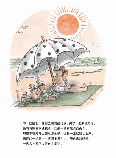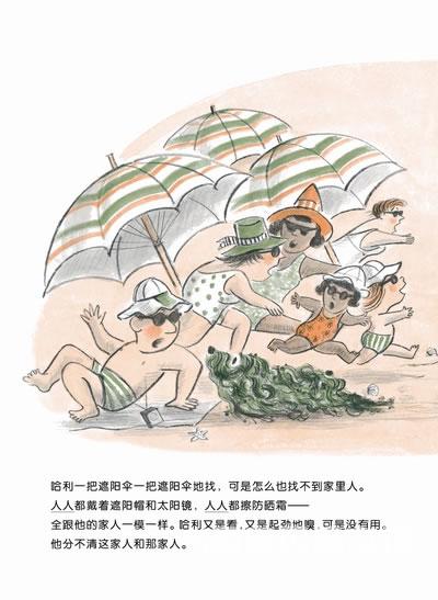 哈利和家人到海边玩,他受不了红彤彤的大太阳,于是到处找可以躲避的地方,可走着走着却迷路了。遮阳伞看起来全都一个样,披着海藻的哈利还被误认为海怪,自己的家人到底在哪儿呢?