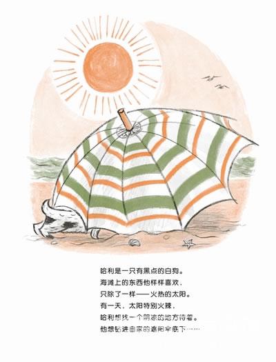 烈日、大海、走失的小狗,和放眼望去全都一模一样的遮阳伞,这场海边历险记接连出现戏剧化效果,环环相扣,趣味十足,而丰富的细节和巧妙的结局更是让人忍俊不禁。找不到家人时的焦急,见到家人后的兴奋,以及家人专门为哈利而做出的改变,其中流露出的温馨和家庭成员间的浓浓爱意尤其打动人心。