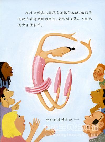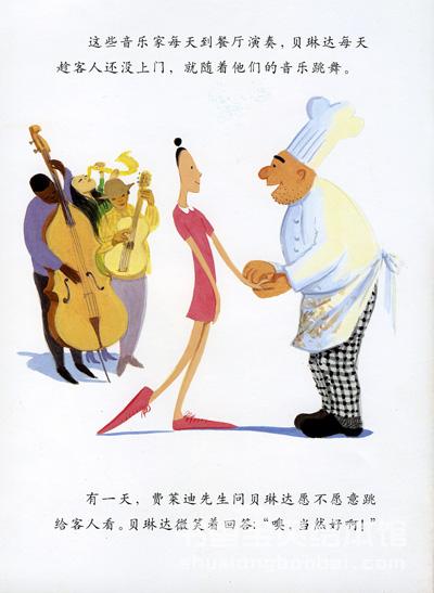 一个叫贝琳达的女孩很喜欢跳芭蕾,而选拔会的评委嫌她的脚太大而拒绝看她的表演。她只好放弃跳舞,找了一份餐厅的工作,她也很喜欢餐厅的老板和客人,可是,她还是常常怀念跳舞。有一天,餐厅里来了一个乐团,在他们美妙的音乐里,贝琳达情不自禁跳起舞来了。在老板的邀请下,贝琳达开始为餐厅的客人跳舞,她跳得美极了,餐厅的客人越来越多,连大都会芭蕾舞团的指挥都来看她跳舞了,并被她感动了。贝琳达终于又回到了舞台,开始为更多的人跳舞。贝琳达很快乐,因为她可以一直跳舞,跳舞。至于那些评审们会说些什么,她一点也不在乎了……