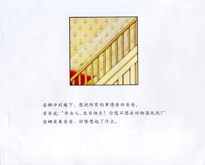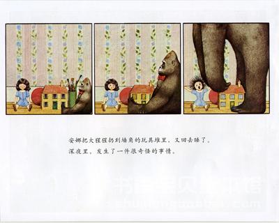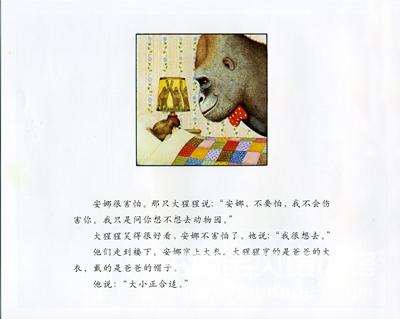 本书讲述的是单亲家庭小女孩安娜的故事,她渴望得到爸爸的关爱,可是现实生活中的爸爸既冷漠又严肃。父女俩吃早餐的时候,爸爸在看报纸,父女两人没有交流。在安娜过生日的前一晚,安娜想要大猩猩作生日礼物,得到的却是一只玩具猩猩。安娜感到自己被关在笼子里,像动物园里的猩猩一样。不过,当晚让人惊异的事情发生了,玩具猩猩变成了真正的大猩猩,并且要带安娜去动物园玩……