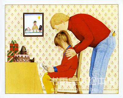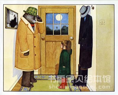 《大猩猩》里的小女孩安娜渴望得到爸爸的关爱,可是现实生活中的爸爸既冷漠又严肃。在本书的前几页,作者用简单的几句话描述爸爸与安娜的疏离关系,还有安娜对大猩猩的喜爱,而其他未尽之言都在图画上呈现