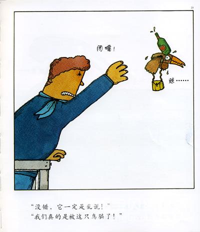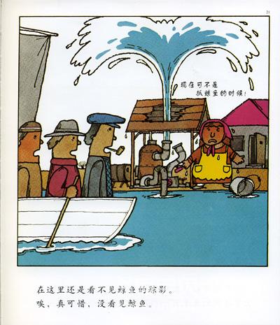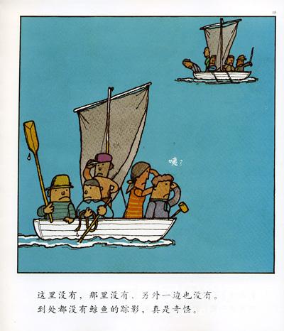 “啊!原来是这样!”几乎每个人看到结局,都有这种恍然大悟的惊叹:一只候鸟飞在天上,大喊着“鲸鱼”!可是,村子里的人们找来找去,都没有在湖里找到,他们开始抱怨候鸟欺骗了他们,可是,一个小孩子被候鸟带着飞上了天空,原来,村边的湖的形状跟鲸鱼一样,而一户人家坏了的水管喷上来的水正象是鲸鱼喷出来的水,原来候鸟也并没有骗人。其实有的时候,表面看到的东西不一定就是事实,而在你眼里是事实的事别人也不一定认同。什么才是真正的真相?一个看似简单的故事留给读者的是无穷的回味。
