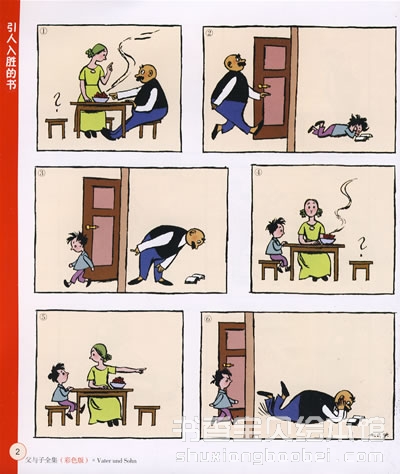 《父与子》中的漫画尽管没有一个字,却很容易读懂,常使人发出会心的微笑!